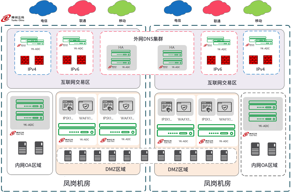 1、以金荣中国应用交付体系为基础构建的新型交付型同城双活数据中心架构,保证数据中心高可用、灵活、便捷扩展、双中心双活